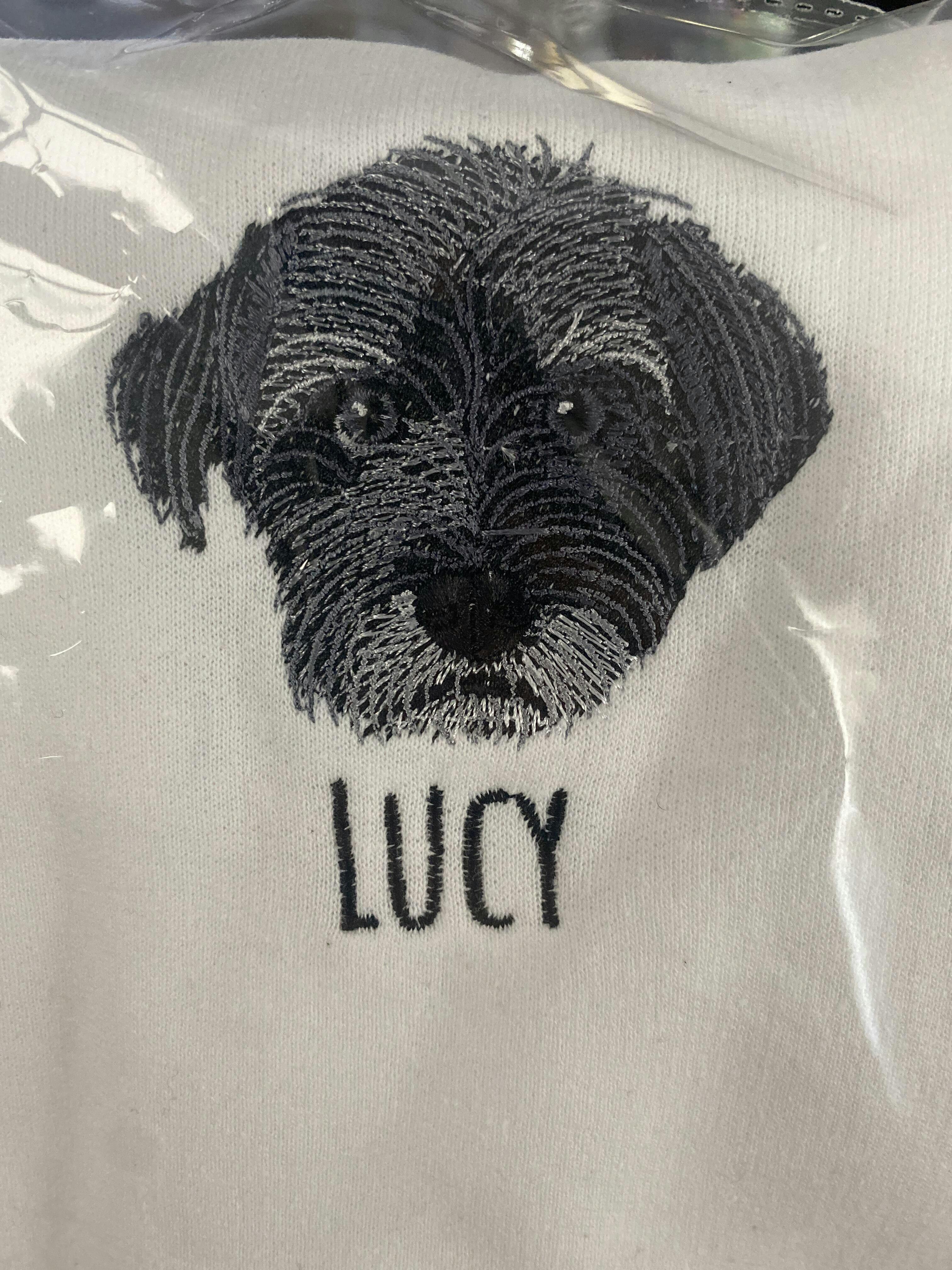 The picture submitted and the sweater embroidered was identical to the dog! Couldn’t believe the accuracy! Thank you for capturing! Highly recommend