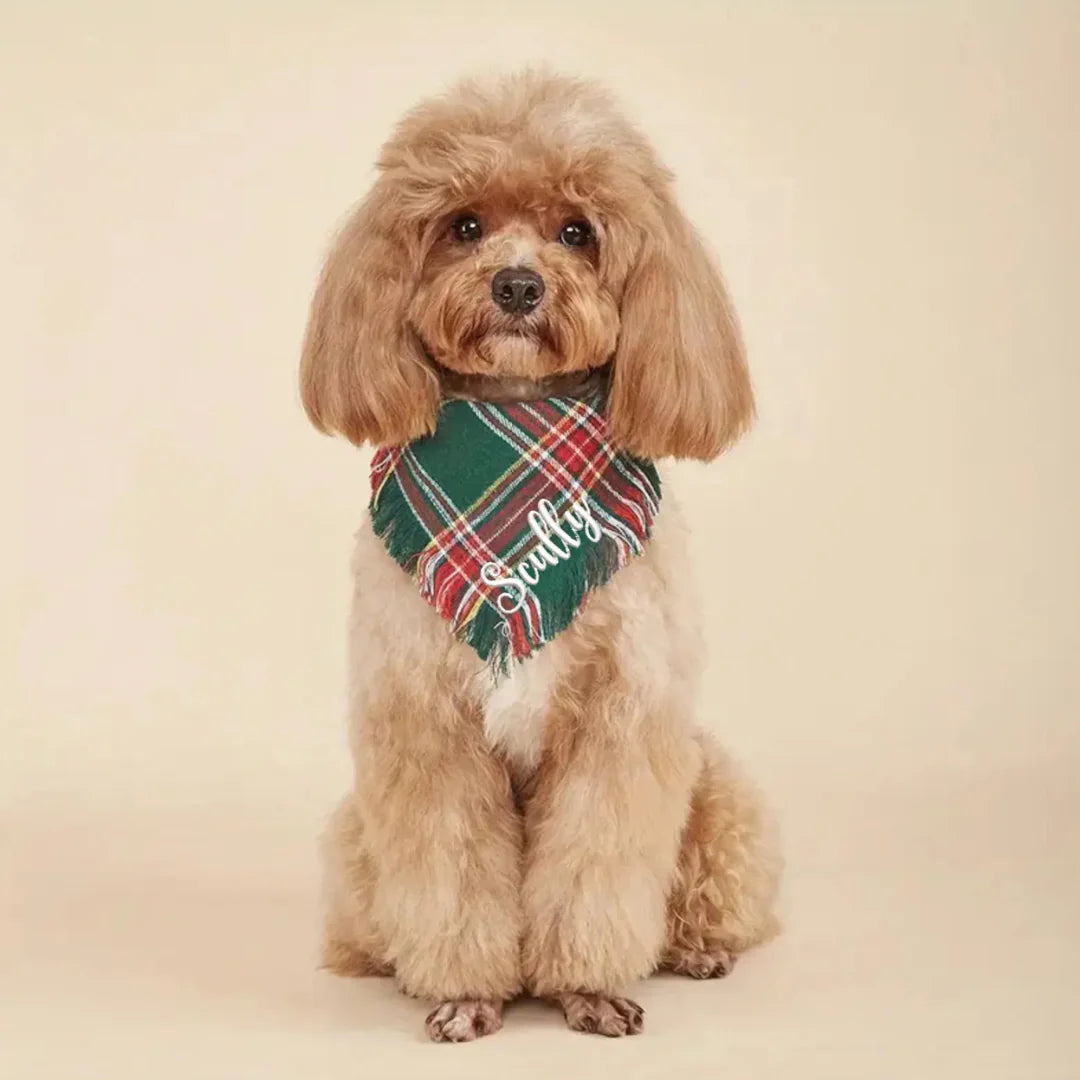 The cutest personalized bandana will have for your furry friend ready for all those upcoming holiday festivities! Embroidered to last and ready for your next adventures. Adjustable size to fit fur babies with necks up to 25.6 inch wide.